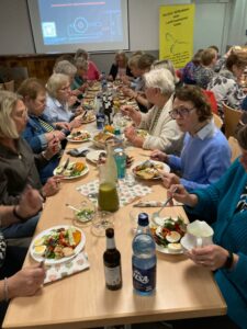 Frau Irmgard Rensmann, Diplom-Ökotrophologin, vermittelte in ihrem Vortrag interessante Einblicke und praktische Tipps für ein gesundes Verdauungssystem. Im Anschluss nutzten die Teilnehmerinnen die Gelegenheit zu Fragen und zum Austausch.
