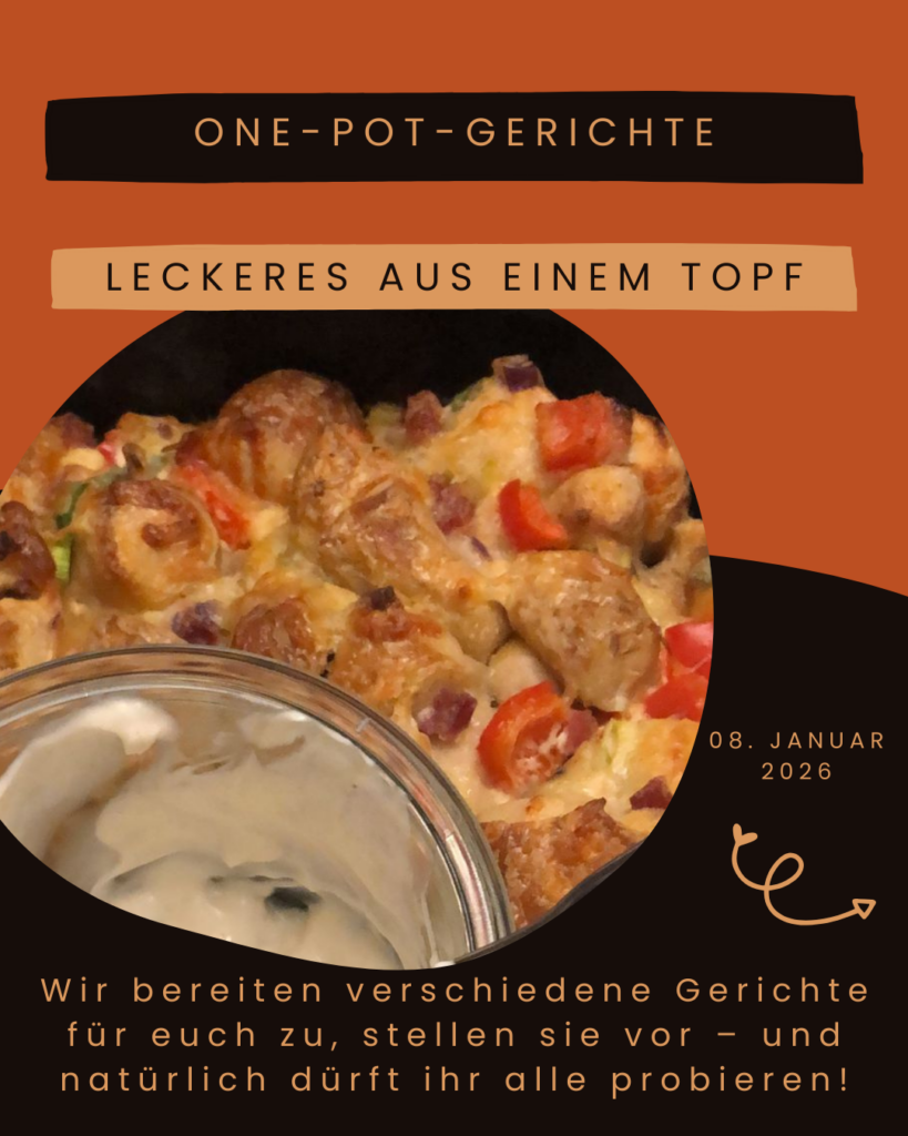 Unter dem Motto „One Pot – Leckeres aus einem Topf“ möchten wir vom Vorstand euch kulinarisch verwöhnen.