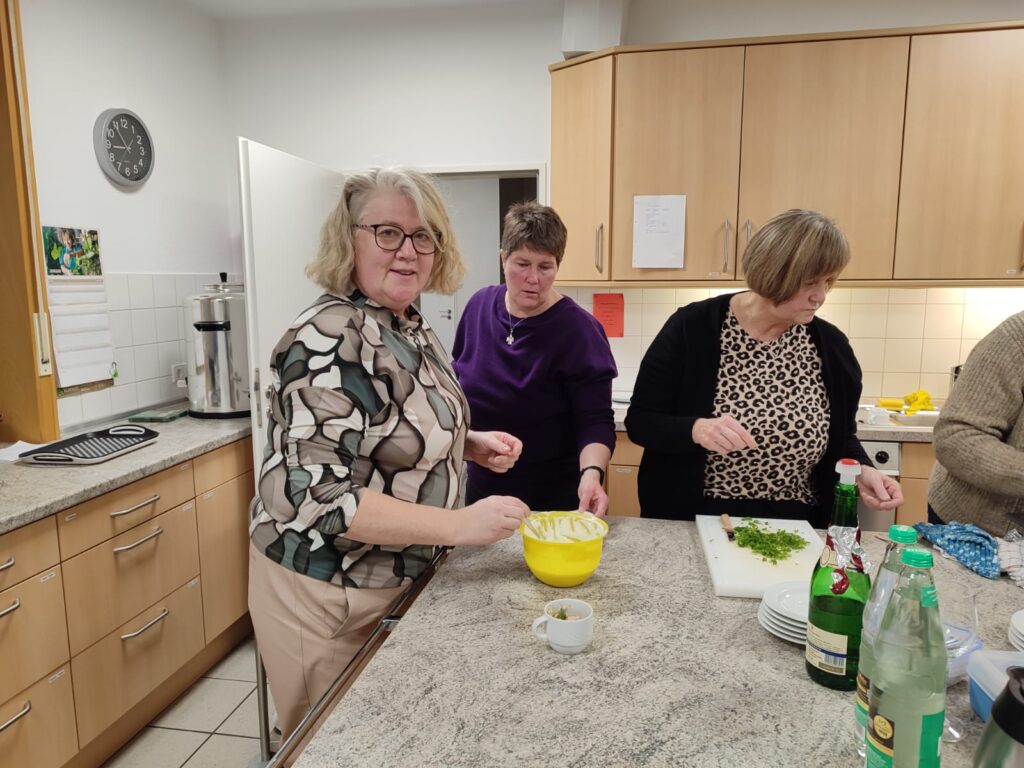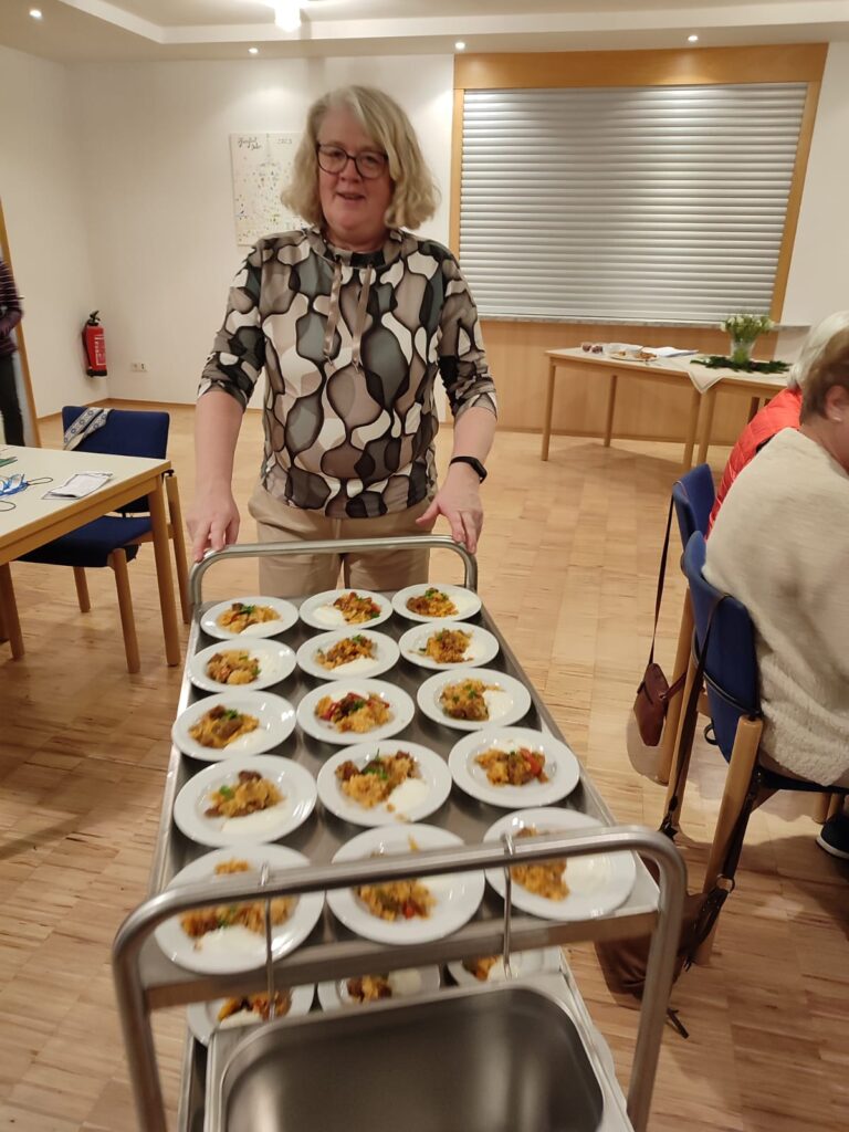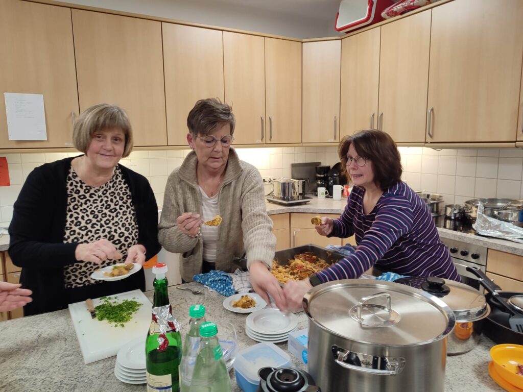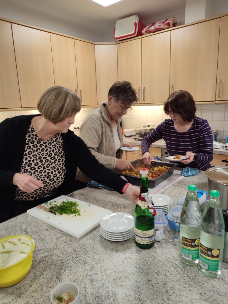 Der Vorstand hatte verschiedene Gerichte vorbereitet, kurz erklärt – und dann durfte natürlich kräftig probiert werden. Es wurde gegessen, geschnackt, gelacht und Rezepte wurden direkt weitergegeben.
