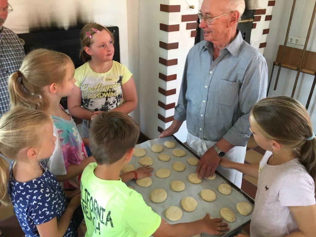 Am 17. Juli 2018 fand die von Sylvia Vortherms und Heike Meutstege vorbereitete Ferienpassaktion „Vom Korn, zum Mehl, zum Brot“ statt.